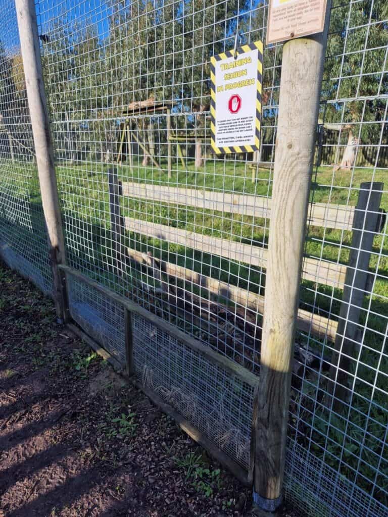 These images show our cheetah training barrier with removeable panel to access the tail and male Cheetah, Colonel Tom, using the training barrier.