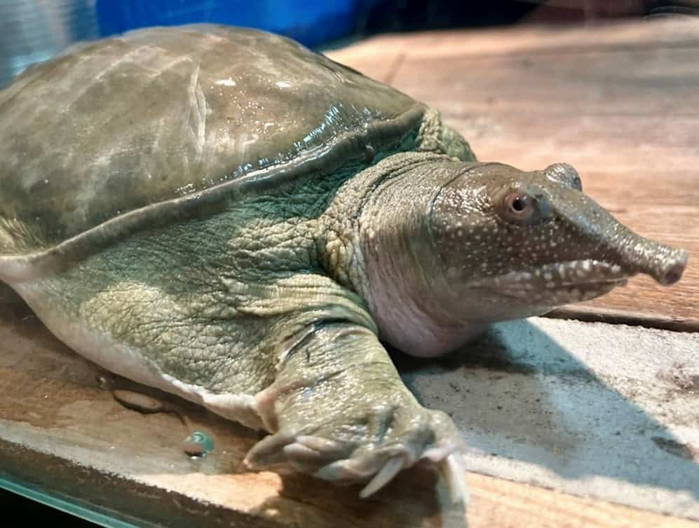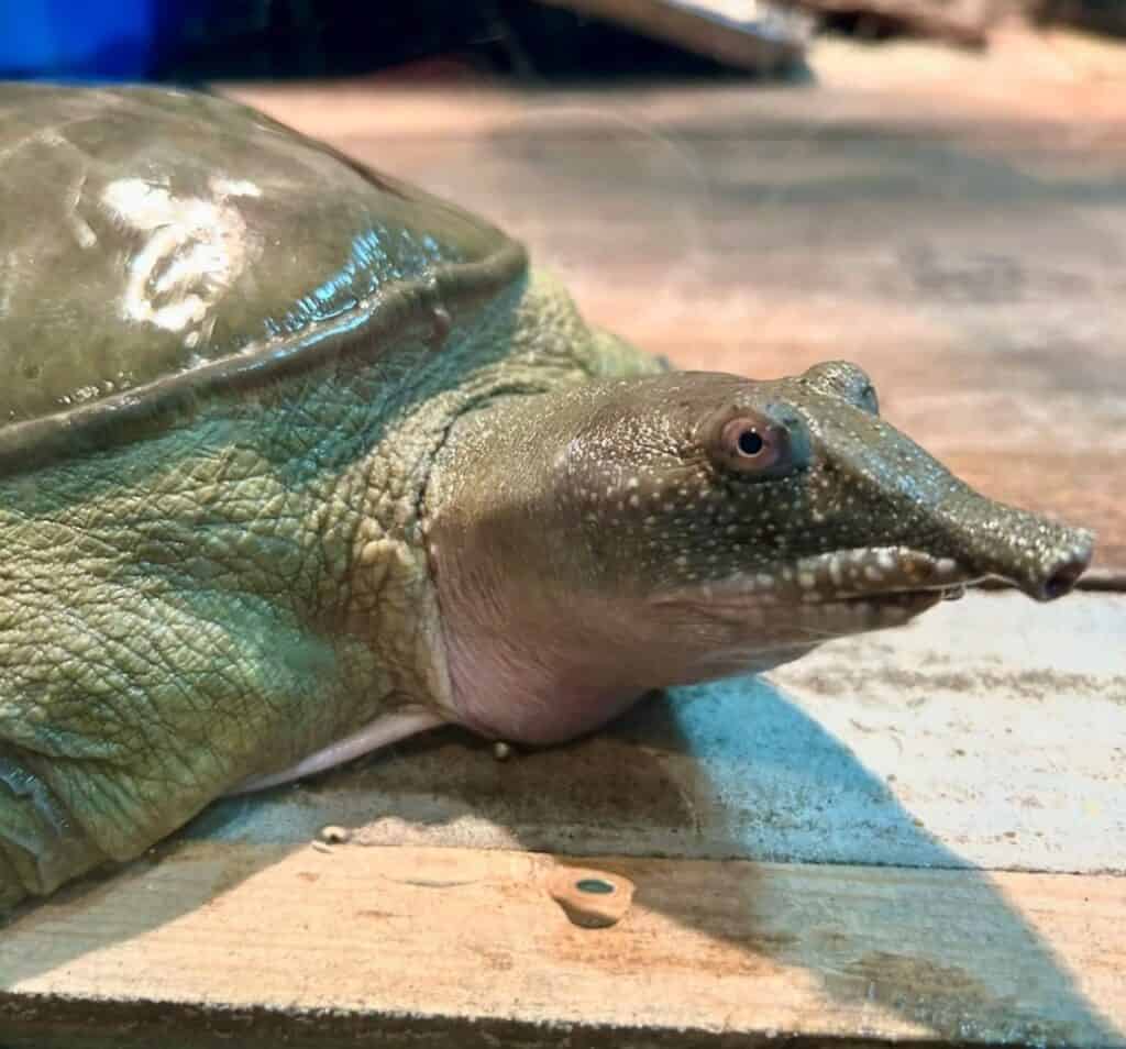 So, let’s have a look at some of the softshelled turtles’ peculiar adaptions for freshwater living. For a start, the softshell turtles’ snorkel-like nose is perfect for being able to take air from the surface of the water without having to fully expose herself to the predators that live on land and potentially in the sky.