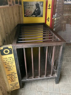 Bear bile farming, where bears are kept in captivity and bile is extracted for use in traditional medicine. Confined in small cages, the extraction process causes long term suffering. Many of these bears are captured from the wild to supply farms, this practice has had a devastating impact on populations and animal welfare. Next time you visit the park I do encourage you to go up to the bear house and see the replica bear bile cage we have on show so you can see how horrible this is, you can even go inside it to see just how cruel this practice is.